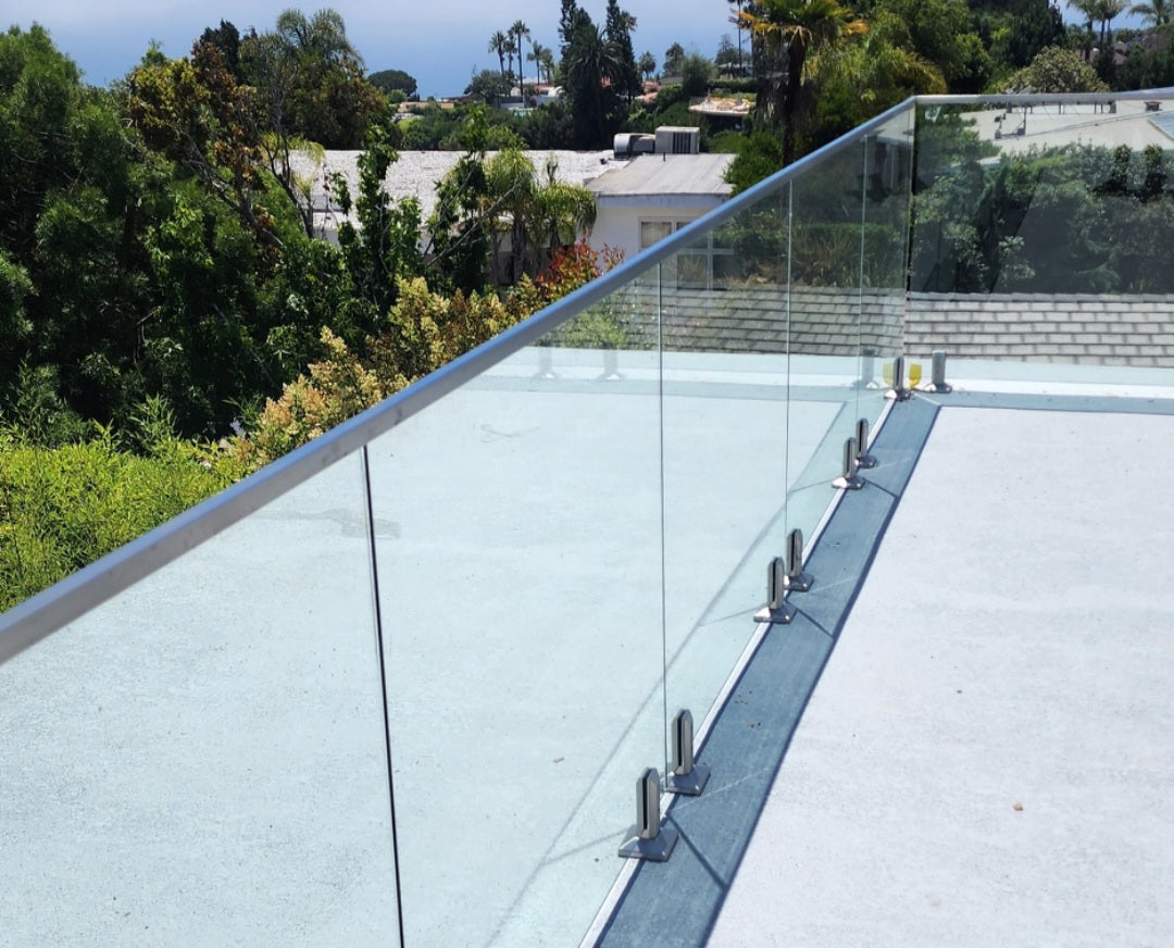 See our Glass Railing ProductsOur Glass Railings look terrific by pools, and on rooftops. We supply and install glass panels, and in addition, a collection of spigots to channels. Our parts can be found in the hardware tab.