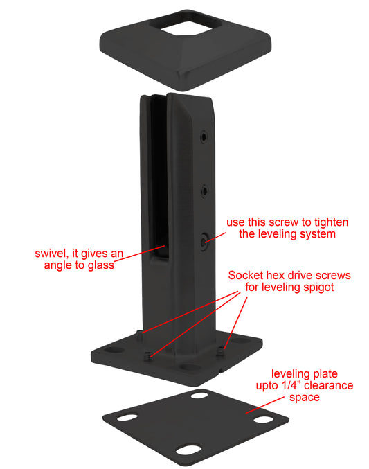 8" Stainless Steel Glass Railing Spigot for Staircase with Leveling Black Finish (G1130-BLK)