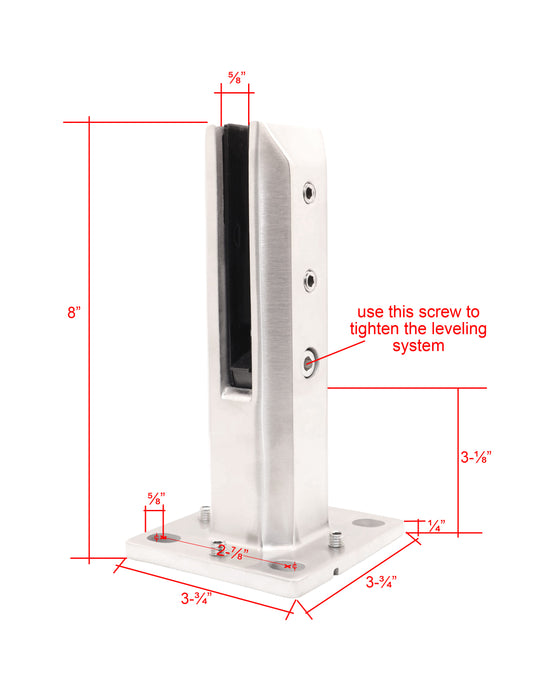 8" Stainless Steel Glass Railing Spigot for Staircase with Leveling Satin Finish (G1130-BRS)