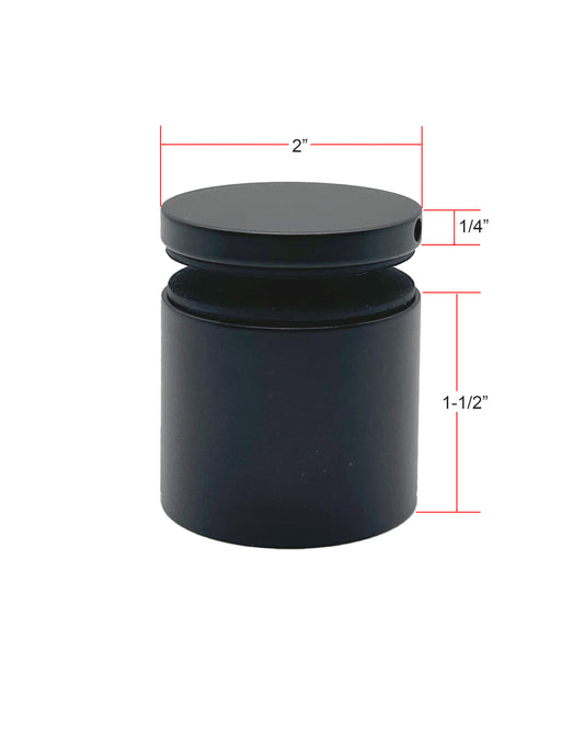 Matte Black Solid Heavy Standoff Mount for Glass Railing 2" Inch with Screw (G1040-200-FIX-BLK)