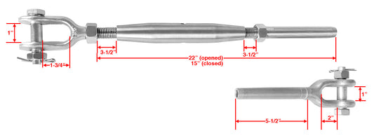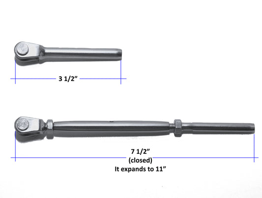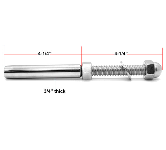 Hand Swage Tensioner Threaded Stud for 1/8" & 3/16" Cable T316 Marine Grade (C1036)